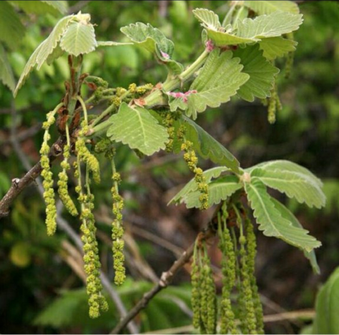 꽃은 양성화이고 5월에 피며, 수꽃이삭은 길게 늘어지고, 암꽃이삭은 1개의 꽃이 있다. 견과의 열매인 도토리는 10월에 익으며, 긴 타원형으로 길이 10∼27mm이다. 열매를 감싸는 깍정이는 뒤로 젖혀진 바소꼴의 포(苞)로 덮여 있다.