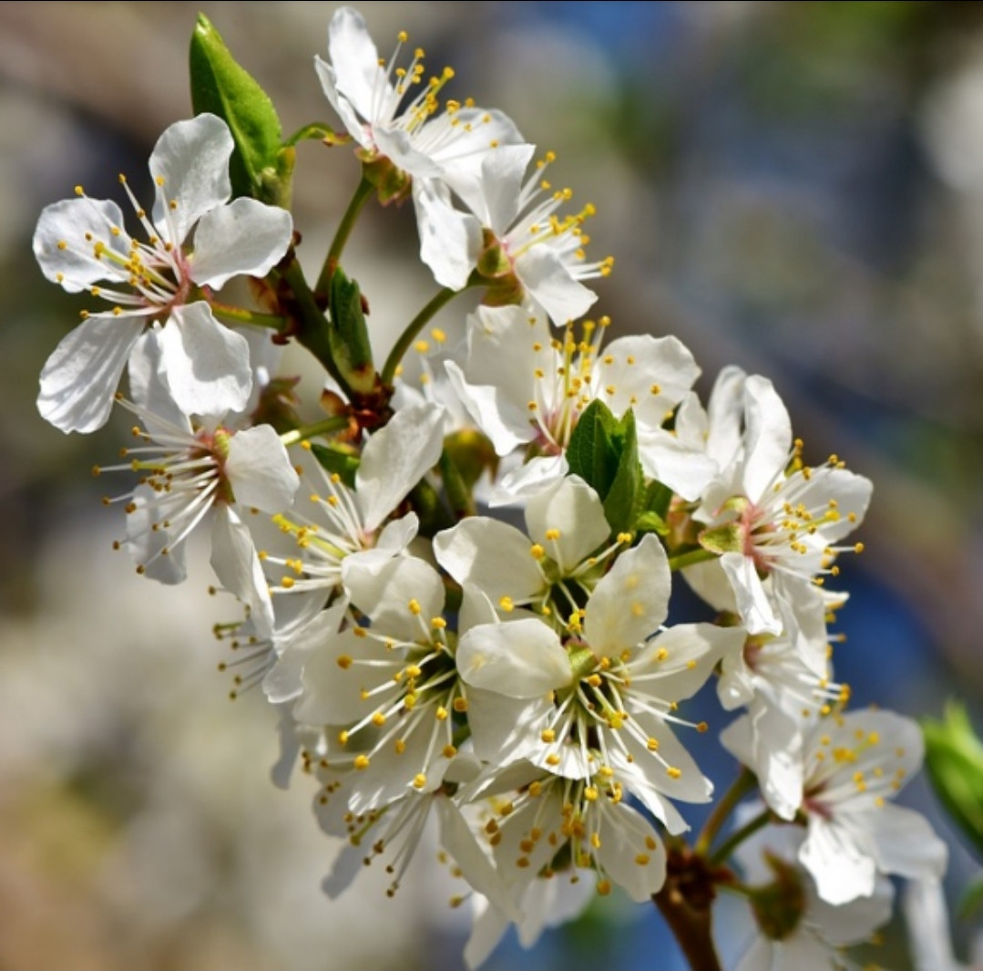 꽃은 4월에 잎보다 먼저 피고 연한 붉은색을 띤 흰빛이며 향기가 난다. 꽃받침조각은 5개로서 둥근 모양이고 꽃잎은 여러 장이며 넓은 달걀을 거꾸로 세워놓은 모양이다. 수술은 많고 씨방에는 빽빽한 털이 난다. 열매는 공 모양의 핵과로 녹색이다. 7월에 노란색으로 익고 지름 2∼3cm이며 털이 빽빽이 나고 신맛이 강하며 과육(果肉)에서 잘 떨어지지 않는다.