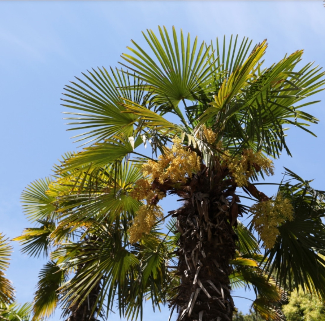 잎자루는 길이 1m 정도로 밑이 넓어져 삼각형으로 되며, 가장자리에 섬유상의 잎집이 발달하여 잎이 떨어진 다음에도 남아 있는데 이 부분의 섬유를 종려털이라고 한다. 암수딴그루이며 꽃은 2가화로 5∼6월에 밑으로 처져서 피고 황백색이며 밑에 커다란 포가 있다. 화피갈래조각 및 수술은 6개씩이고 암술은 1개이다. 열매는 둥글고 지름 1cm 정도로서 검게 익는다. 한국에서는 제주에서 관상용으로 심고 있으나 원산지에서는 섬유의 용도가 다양하고, 잎은 1년에 8∼10장이 나오므로 이것을 채취하여 농가의 소득을 올린다.