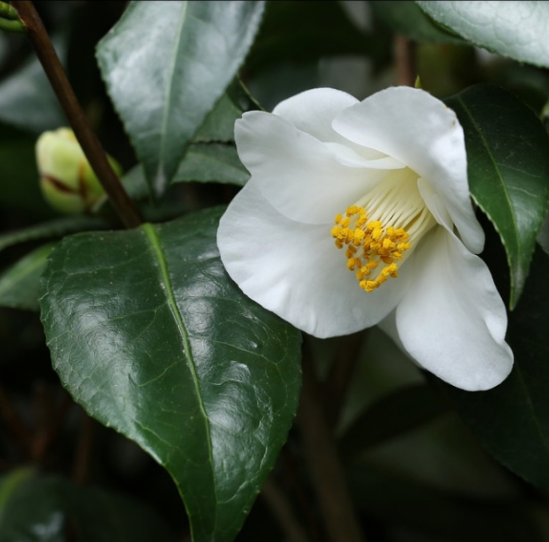 동백나무는 밑에서 가지가 갈라져서 관목으로 되는 것이 많다. 나무껍질은 회백색이며 겹눈은 선상 긴 타원형이다. 잎은 어긋나고 타원형 또는 긴 타원형이다. 잎가장자리에 물결 모양의 잔 톱니가 있고 윤기가 있으며 털이 없다.