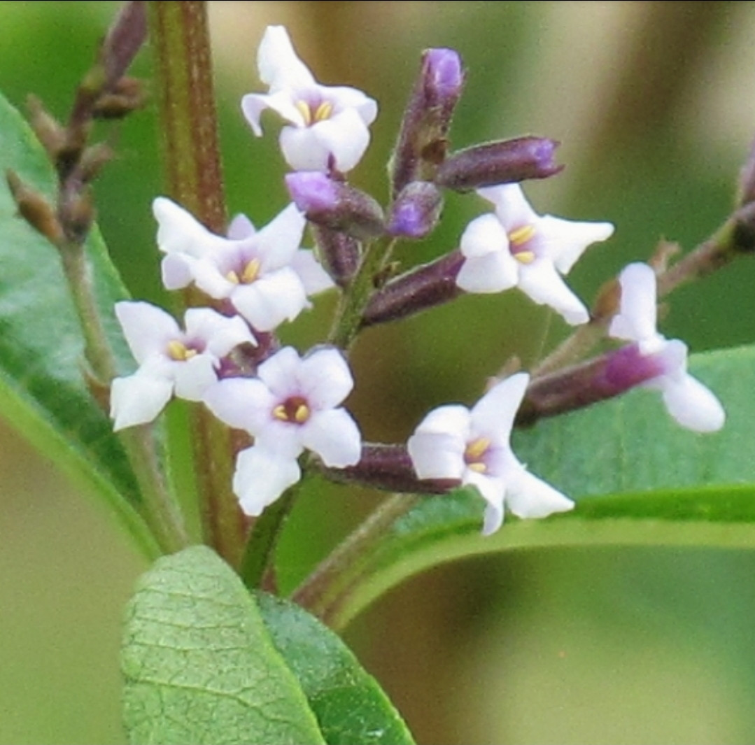 높이 60~150cm 정도 자라는 비내한성 낙엽 소저목이다. 전체에 강한 레몬향을 지닌다. 잎의 길이는 7~12cm로 긴 피침형으로 끝은 뾰족하다. 잎은 3~4개가 줄기에 윤생(輪生)한다. 꽃은 여름에 흰색 또는 연보라색으로 작은 것이 밀집하여 원추화서(圓錐花序)로 달린다.