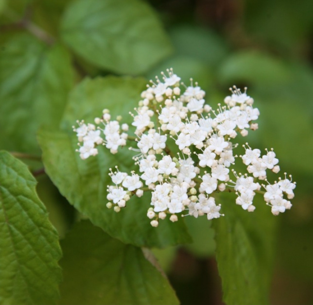 꽃은 흰색이며, 6월에 잎이 달린 가지 끝이나 줄기 끝에 취산꽃차례로 핀다. 화관에 털이 있고 수술이 화관보다 길다. 열매는 달걀 모양 핵과로 10월에 붉게 익는다.