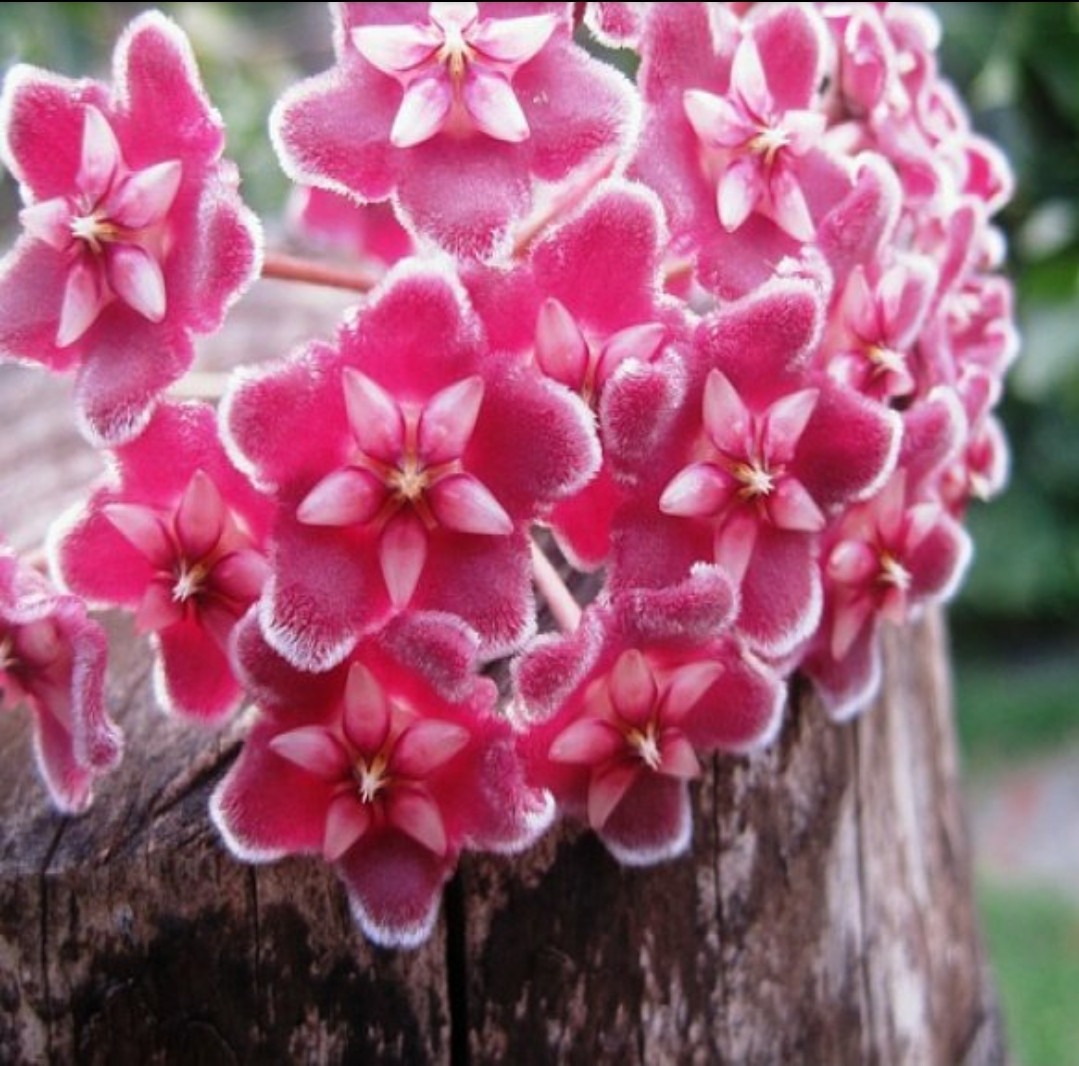 ",2~3m나 되는 덩굴에서 분홍빛의 작은 꽃이 동그랗게 핀다. 향기가 아주 좋다. 잎새는 짙은 녹색이지만 광택이 있어서 밝은 녹색으로 보인다. 잎새 둘레에 하얀 반점이 들어가 있는 것도 있다. 최근에는 인기 있는 관엽 식물로 온실 재배도 많이 이루어지고 있다.