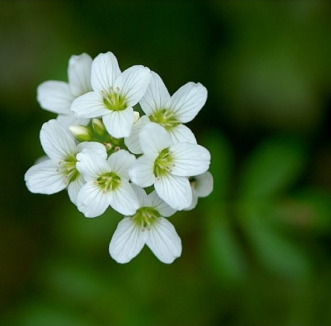 꽃은 5∼7월에 줄기 끝에 총상꽃차례를 이루며 흰색 또는 붉은 빛이 강한 자주색으로 핀다. 꽃받침조각은 4개이며 달걀을 거꾸로 세운 모양이다. 꽃잎은 4개이고 길이가 1cm 정도로 꽃받침보다 길다. 화관은 4개의 꽃잎이 십자 모양을 이룬 십자 화관이다. 수술은 6개인데 6개 중 4개가 길고, 1개의 암술이 있다.