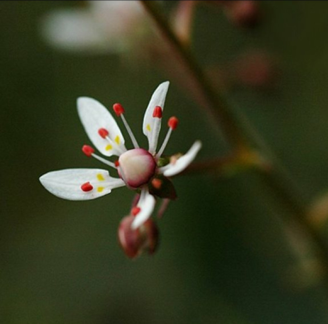 꽃줄기는 높이 약 38cm로 밑부분에 성모(星毛:여러 갈래로 갈라진 별 모양의 털)가 난다. 꽃은 7∼8월에 피고 흰색이며 취산상 총상꽃차례에 달린다. 포(苞)는 줄 모양이고 가장자리에 털이 나며 작은포는 털이 없다. 꽃받침은 5갈래로 갈라지고 길이 2mm이며 털이 없다. 꽃잎은 5개로서 거꾸로 선 바소꼴이고 끝이 둔하며 길이 3.5mm이다.