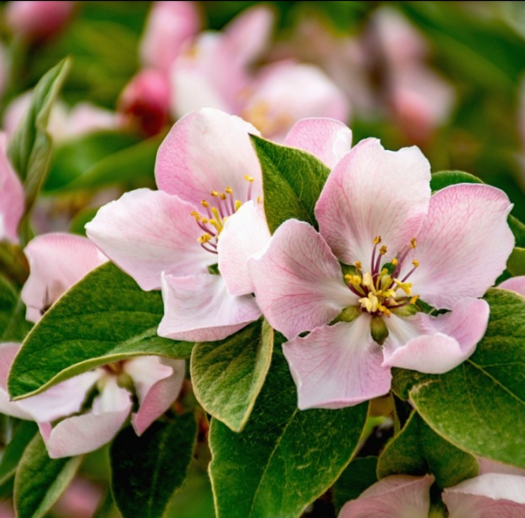그리스·로마 시대부터 재배한 식물이다. 과수로서 수관(樹冠)이 둥글며, 높이 5∼8m이다. 잎은 어긋나고 달걀 모양 또는 긴 타원형이며 두껍고 짙은 녹색이다. 잎 뒷면에 회백색 솜털이 밀생한다. 꽃은 늦은 봄에 짧은가지에 1개씩 달리는데, 지름은 4∼5cm이고 흰색 또는 연분홍색이 돌며 꽃잎과 암술대는 5개씩이고 수술은 많다.