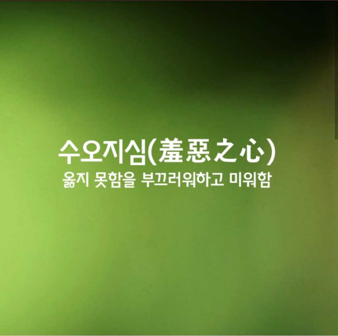 ○ 羞(부끄러울 수) 惡(미워할 오) 之(갈 지) 心(마음 심)