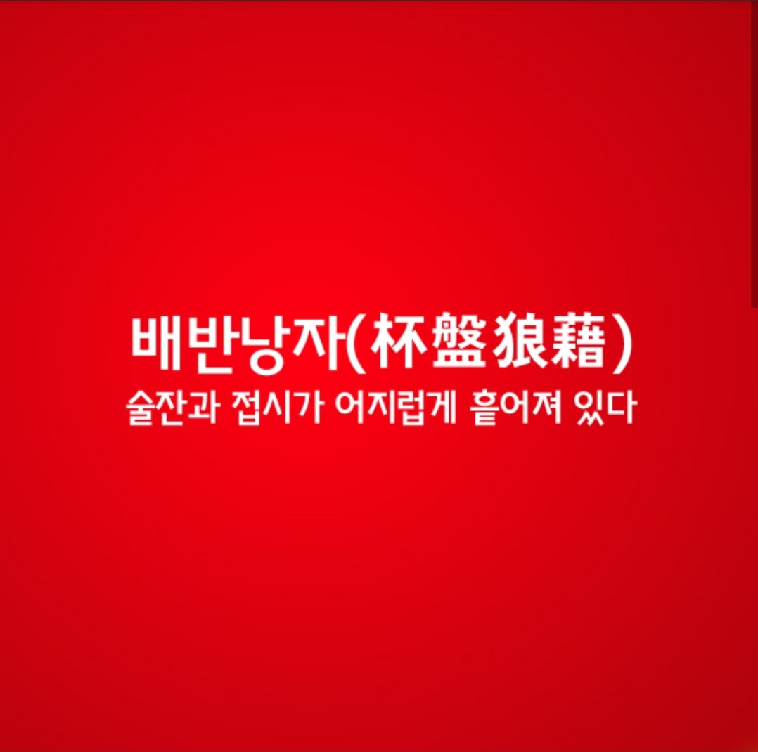 ○ 杯(잔 배) 盤(쟁반 반) 狼(어지러울 낭) 藉(어지러울 자)