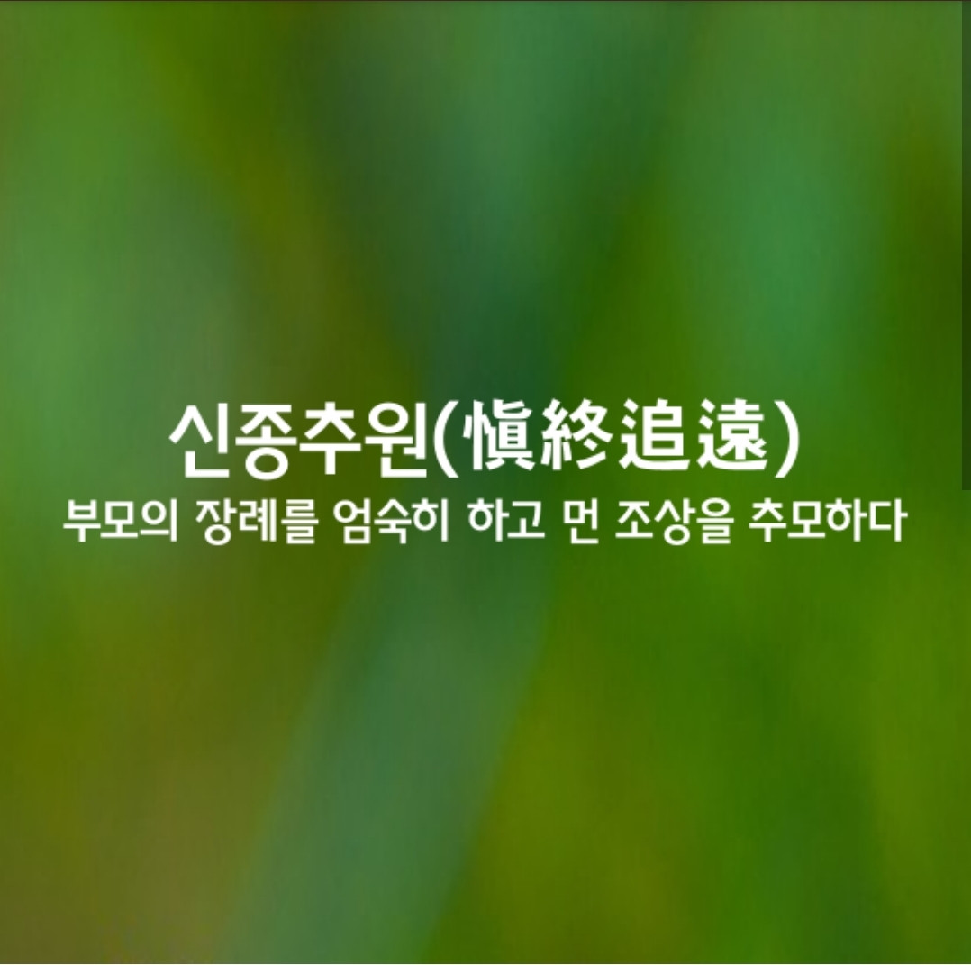 ○ 愼(삼갈 신) 終(마칠 종) 追(쫓을 추) 遠(멀 원)