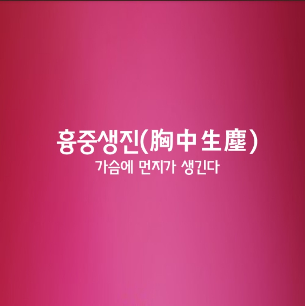 ○ 胸(가슴 흉) 中(가운데 중) 生(날 생) 塵(티끌 진)