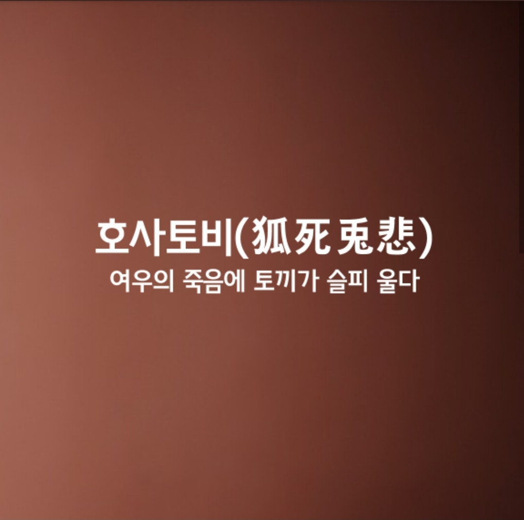 여우가 죽으면 토끼가 슬퍼한다는 뜻으로,동류(同類)의 불행(不幸)을 슬퍼함. 여우가 죽었을 때(狐死) 토끼가 슬피 운다(兎悲)는 이 성어는 같은 처지의 동류끼리 불행을 위로한다는 뜻도 있고, 마음속으로는 좋아하면서 겉으로는 슬픈 척 하는 것을 비유하기도 한다.