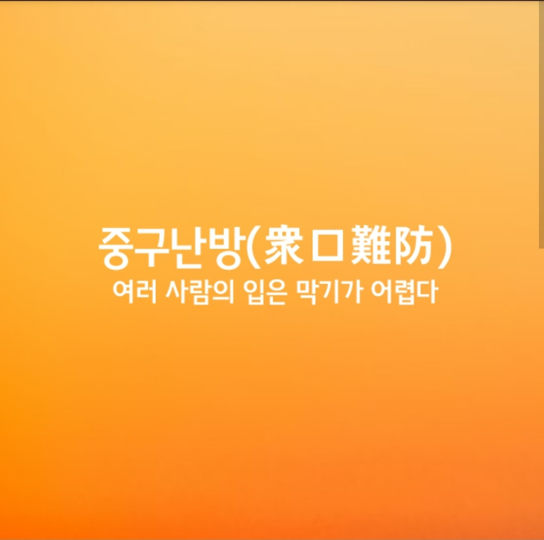 어떤 사안에 대해 의견이 일치되긴 어렵다. 더군다나 이해가 갈린 경우라면 사람마다 각각의 처방을 낸다. 조금씩 양보를 하고 합리적인 차선책을 찾는 것이 민주적이라고 교육은 받아왔지만 막상 자신이 관련되면 싹 무시한다. 여러 사람이 입을 모아 주장하면(衆口) 막기 어렵다(難防)는 성어는 처음엔 이같이 支離滅裂(지리멸렬)을 뜻하지 않았다.