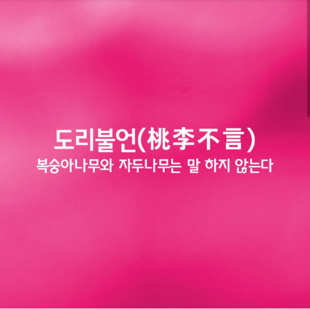 ○ 桃(복숭아 도) 李*오얏 리) 不(아닐 불) 言(말씀 언)