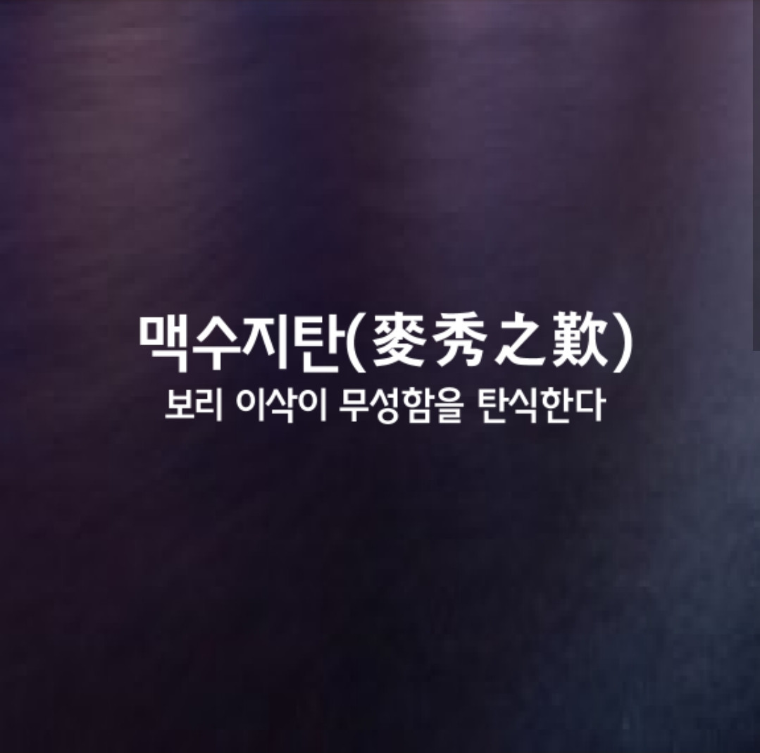 보리 이삭은 무럭무럭 자라나고 麥秀漸漸兮(맥수점점혜)벼와 기장도 윤기가 흐르는구나 禾黍油油兮(화서유유혜)교활한 저 철부지(주왕)가 彼狡童兮(피교동해)내 말을 듣지 않았음이 슬프구나 與我好兮(불여아호혜)