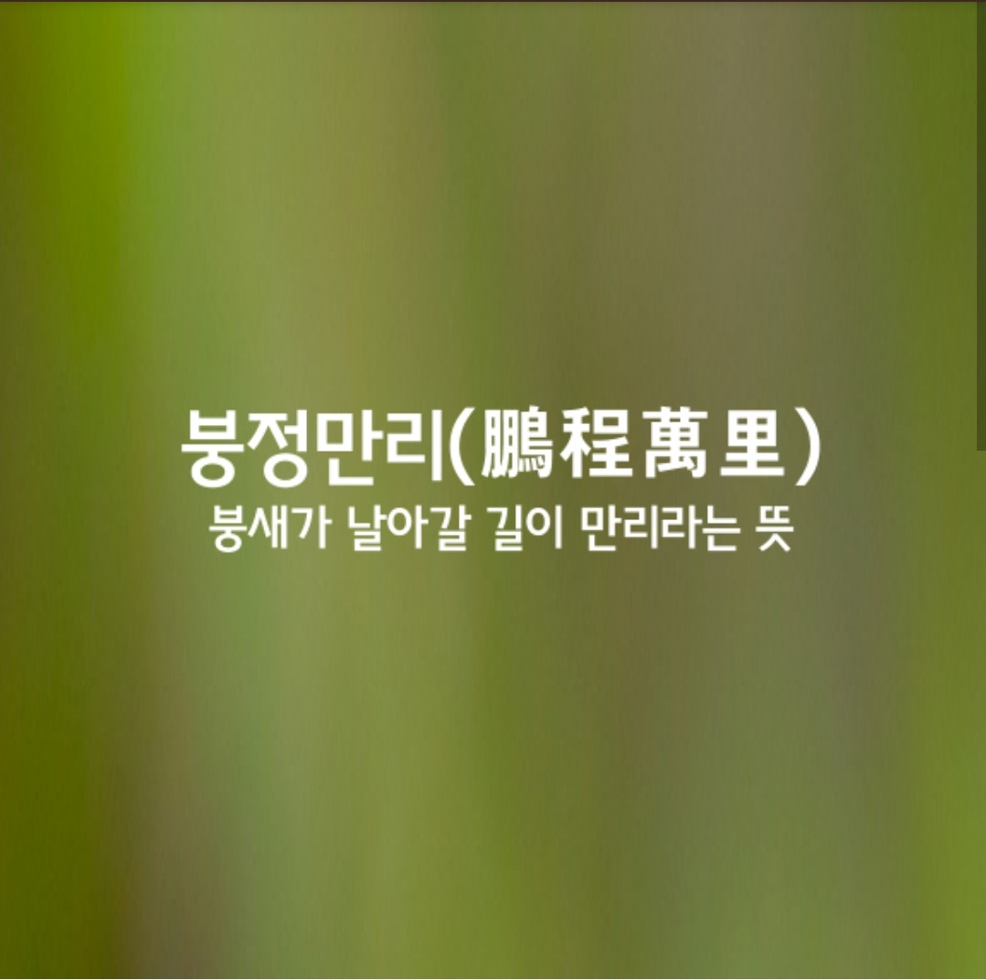○ 鵬(붕새 붕) 程(길 정) 萬(일만 만) 里(거리 리)