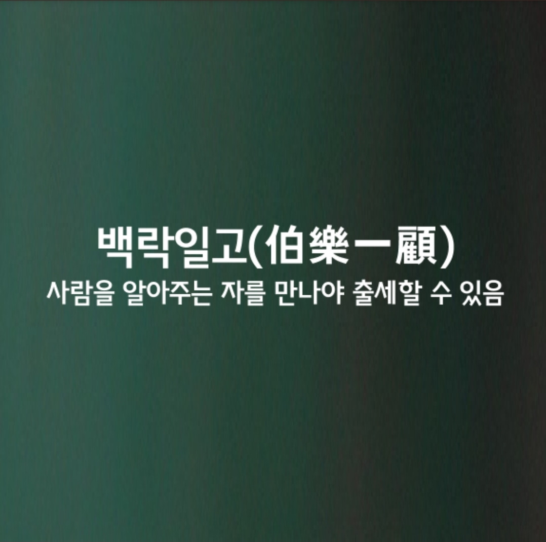 백락의 한번 돌아봄, 명마도 백락을 만나야 세상에 알려 지듯이 현명한 사람 또한 그 사람을 알아주는 자를 만나야 출세할 수 있음을 비유한다.