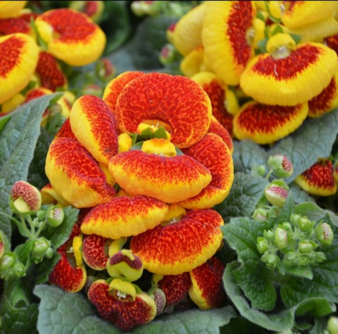 꽃은 입술 모양이고, 아랫입술꽃잎이 주머니 모양이다. 꽃 빛깔은 대개 노란 색 또는 자주색이다. 한국에서 재배하는 종류는 교잡종인 헤르베오히브리다(C. herbeohybrida)와 꽃이 큰 그란디플로라(C.grandiflora)인데, 이 두 종은 꽃이 적게 달리지만 멀티플로라 계통은 작은 꽃이 빽빽이 달린다. 근래에 와서는 꽃이 작은 계통의 종을 많이 심는다.
