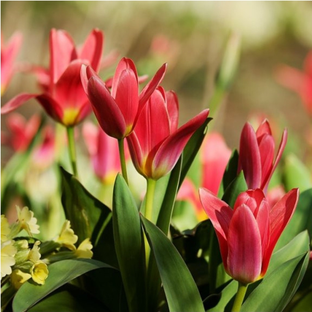 꽃은 4∼5월에 1개씩 위를 향하여 빨간색·노란색 등 여러 빛깔로 피고 길이 7cm 정도이며 넓은 종 모양이다. 화피는 위로 약간 퍼지지만 옆으로는 퍼지지 않으며 수술은 6개이고 암술은 2cm 정도로서 원기둥 모양이며 녹색이다. 열매는 삭과로서 7월에 익는다. 관상용 귀화식물로서 원예농가에서 재배한다.