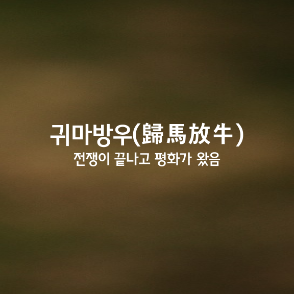전쟁이 끝나고 평화가 왔음. 전쟁에 사용할 말과 소를 숲이나 들로 돌려 보내어 다시 쟁기나 수레를 끌게 하는 것을 이르는 말