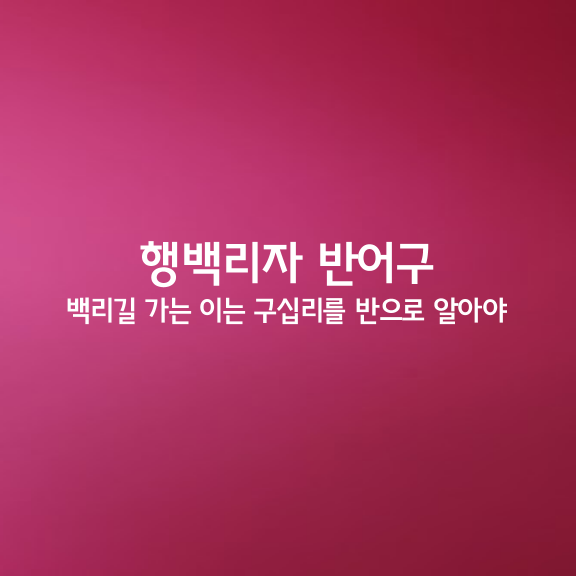 ‘천리 길도 한 걸음부터‘란 말이 시작을 중시한 것인데 비해 백리 길을 가는 사람(行百里者)은 구십 리를 왔더라도 반으로 알아야 한다(半於九十)는 이 말은 마무리가 중요하다는 교훈이다. 줄여서 行百里者 半九十(행백리자 반구십)이나 行百里者 半九十里(행백리자 반구십리)로 써도 같다. 劉向(유향)의 ‘戰國策(전국책)’에서 유래한 성어다. 前漢(전한)의 학자인 유향은 戰國時代(전국시대)란 이름을 이 책에서 가져오게 한 것으로 유명하다.