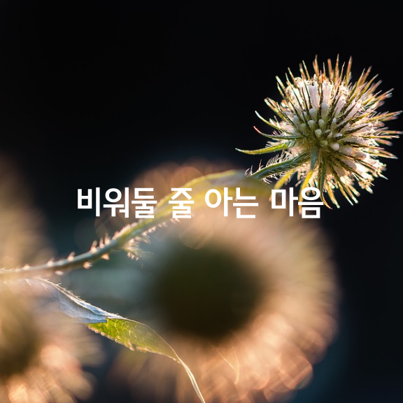 재물도 명예도 지위도 필요한 분량 그 이상 넘어서는 욕망과 욕심은 절제하고 양보하고 비워둘 줄 아는 삶의 태도가 성공과 행복한 아름다운 삶을 가져올 것입니다.