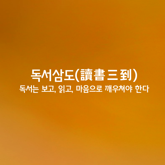 독서(讀書)의 법은 구도(口到)ㆍ안도(眼到)ㆍ심도(心到)에 있다 함이니, 즉 입으로 다른 말을 아니하고, 눈으로 딴 것을 보지 말고, 마음을 하나로 가다듬고 반복(反復) 숙독(熟讀)하면, 그 진의(眞意)를 깨닫게 된다는 뜻이며, 독서하는데는 눈으로 보고, 입으로 읽고, 마음으로 깨우쳐야 한다는 뜻, 책을 읽어 삼도(三到)에 빠진다는 말로, 정신을 집중하여 책을 읽는 것을 뜻함.