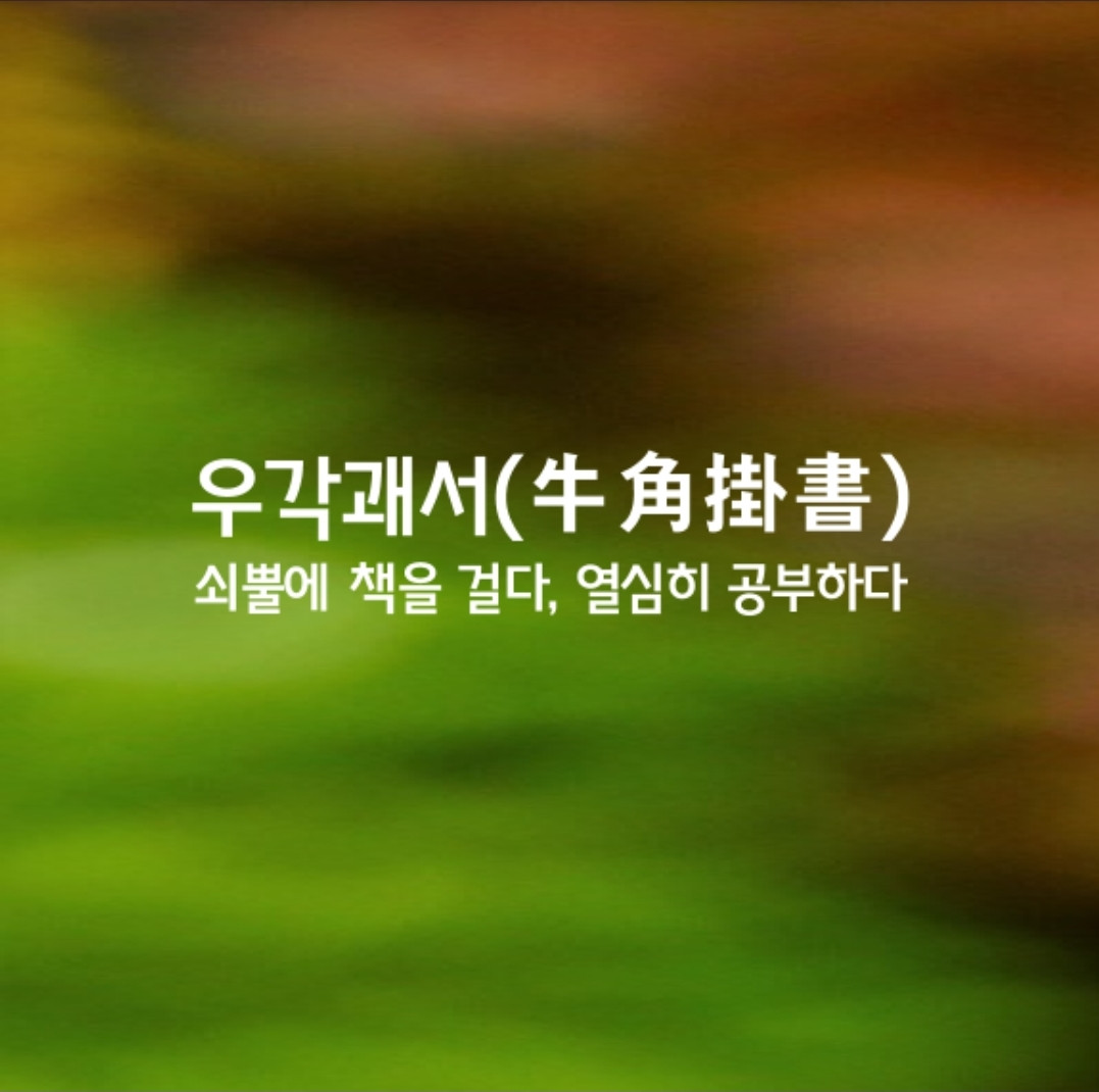 소의 뿔에 책을 걸어 놓는다는 뜻으로,소를 타고 독서(讀書)함을 이르는 말. 즉, 시간(時間)을 아껴 오로지 공부하는 데 힘쓰는 태도(態度)를 비유(比喩ㆍ譬喩)함