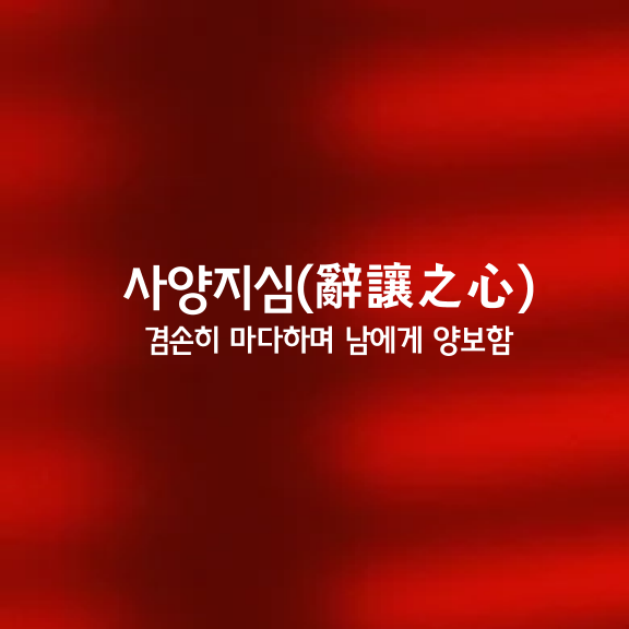 사단(四端)의 하나. 겸손(謙遜)히 마다하며 받지 않거나 남에게 양보(讓步)하는 마음. 예(禮)의 근본(根本), 아래는 맹자의 사단설(四端說) 가운데 나오는 말로, 맹자 공손추편(公孫丑篇)에 있는 말이다.
