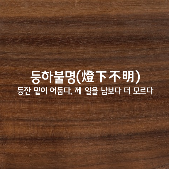 ",등잔 밑(燈下)이 어둡다(不明)는 속담을 그대로 번역한 이 성어는 가까이에 있는 물건이나 사람을 잘 찾지 못할 때 많이 쓴다. 편자 미상의 한문 속담집 ‘東言解(동언해)’에 수록되어 있다고 한다.