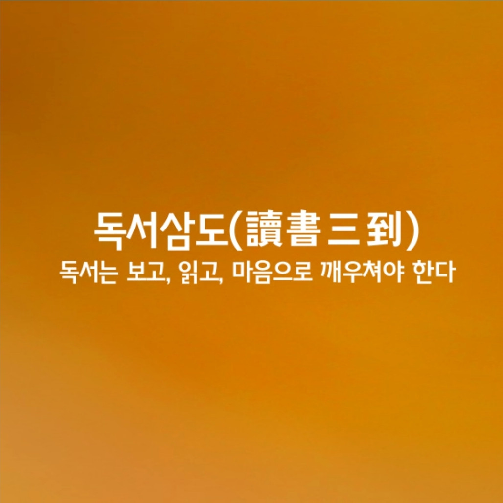 독서(讀書)의 법은 구도(口到)ㆍ안도(眼到)ㆍ심도(心到)에 있다 함이니, 즉 입으로 다른 말을 아니하고, 눈으로 딴 것을 보지 말고, 마음을 하나로 가다듬고 반복(反復) 숙독(熟讀)하면, 그 진의(眞意)를 깨닫게 된다는 뜻이며, 독서하는데는 눈으로 보고, 입으로 읽고, 마음으로 깨우쳐야 한다는 뜻, 책을 읽어 삼도(三到)에 빠진다는 말로, 정신을 집중하여 책을 읽는 것을 뜻함.