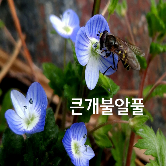 유럽 원산으로 우리나라 남부지방에 자라는 두해살이풀이다. 전체에 부드러운 털이 난다. 줄기는 가지가 갈라져서 아래쪽이 비스듬히 자라며, 높이 10-40cm이다. 잎은 아래쪽에서는 마주나지만 위쪽에서는 어긋나며, 난상 원형으로 길이 7-18mm, 폭 6-15mm이고, 가장자리에 끝이 둔한 톱니가 3-5개씩 있다. 잎 양면은 털이 드문드문 난다. 꽃은 잎겨드랑이에서 1개씩 달리며, 하늘색, 지름 7-10mm이다. 꽃자루는 길이 1-4cm이다. 꽃받침은 4갈래로 갈라진다. 화관은 4갈래로 갈라지는데, 아래쪽의 것이 조금 작다. 열매는 삭과다.