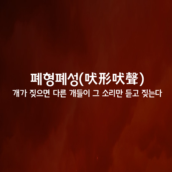 가장 잘 알려진 附和雷同(부화뇌동) 말고도 주관도 없이 남이 하는 대로 하는 사람을 가리키는 應聲蟲(응성충)이란 말과 함께 한 마을에서 형체를 보고 짖는 개(吠形)의 소리만 듣고 나머지 개도 따라 짖는다(吠聲)는 이 말이다. 원래의 一犬吠形 百犬吠聲(일견폐형 백견폐성)이란 말을 줄여서 사용했다.