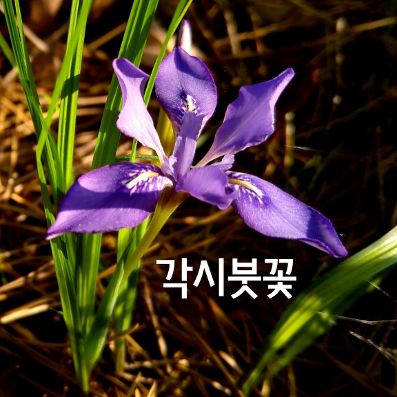 4∼5월에 지름 4cm 정도의 자주색 꽃이 피는데, 꽃자루의 길이는 5∼15cm로 4∼5개의 포가 있고, 맨 위의 포에 1개의 꽃이 핀다. 암술대는 3개로 갈라진 뒤에 다시 2개씩 깊게 갈라진다. 열매는 둥근 삭과로 지름이 약 8mm이다.