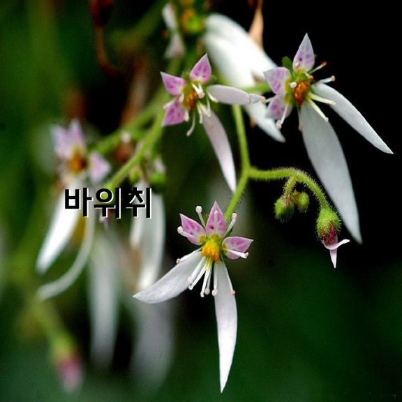 호이초(虎耳草)·범의귀·왜호이초·등이초(橙耳草)·석하엽(石荷葉)이라고도 한다. 그늘지고 축축한 땅에서 잘 자란다. 전체에 붉은빛을 띤 갈색 털이 길고 빽빽이 난다. 높이는 60cm 정도이다.