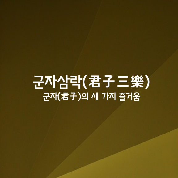 군자(君子)의 세 가지 즐거움이라는 뜻으로, 첫째는 부모(父母)가 다 살아 계시고 형제(兄弟)가 무고(無故)한 것,둘째는 하늘과 사람에게 부끄러워할 것이 없는 것,셋째는 천하(天下)의 영재를 얻어서 교육(敎育)하는 것