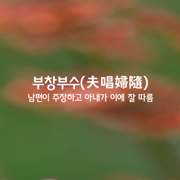 지아비가 노래 부르면(夫唱) 아내는 따라 부른다(婦隨)는 이 성어는 부인을 자기의 의견에 따르도록 윽박지르는 남편이 즐겨 내세우는데 사용한다. 하지만 남편이 옳은 의견을 낼 때 아내가 그 뜻에 잘 따라 화합을 이룬다는 뜻이지 男尊女卑(남존여비), 바람을 피우거나 턱없는 뜻에도 잘 따른다는 것이 아님은 물론이다. 중국 周(주)나라 때의 사람 尹喜(윤희)가 지은 ‘關尹子(관윤자)’에서 처음 유래했다. 윤희는 中原(중원)과 關中(관중)을 잇는 험난한 요새 函谷關(함곡관)을 지키는 관리였는데 그곳을 지나던 老子(노자)에게서 道德經(도덕경)을 받았다는 사람으로 알려졌다.