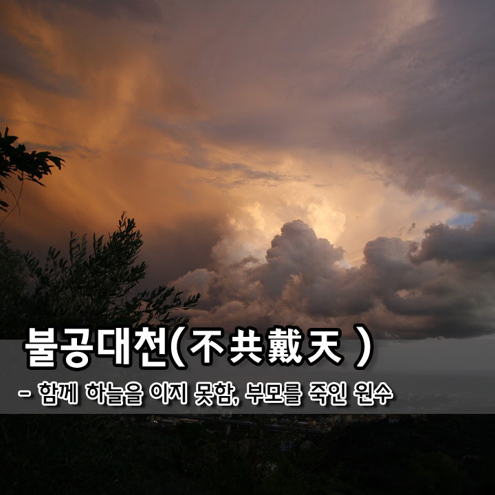 불공대천(不共戴天) - 함께 하늘을 이지 못함, 부모를 죽인 원수\xa0