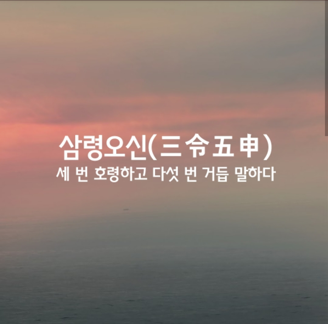 ○ 三(석 삼) 令(하여금 령) 五(다섯 오) 申(거듭 신)