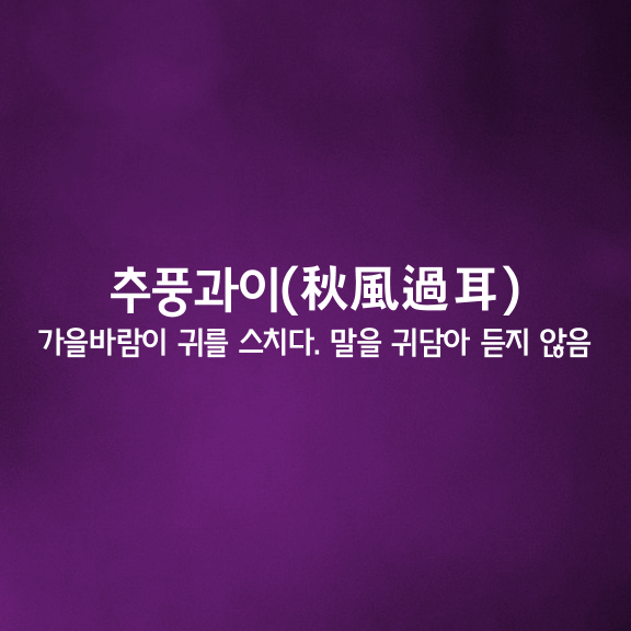 ○ 秋(가을 추) 風(바람 풍) 過(지날 과) 耳(귀 이)