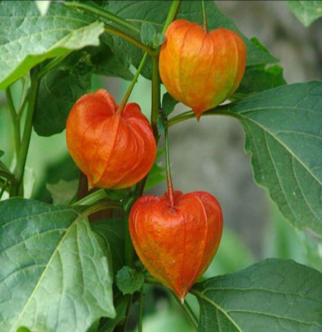 열매는 장과로 둥글고 지름이 1.5cm 정도로 빨갛게 익으며 먹을 수 있다. 이 열매를 ‘꽈리’라고 하는데, 빨갛게 익은 다음 씨를 빼내어 입에 넣고 공기를 채웠다가 아랫입술과 윗니로 지그시 누르면 소리가 나 어린이들의 좋은 놀이감이 된다. 전체를 말린 것을 한방에서 산장(酸漿)이라 하며 해열약으로 쓴다. 한국, 일본, 중국에 분포한다.