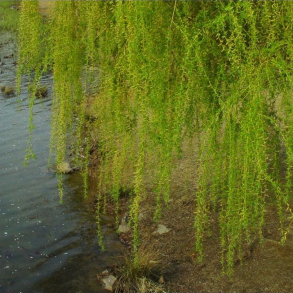 물가나 습지에서 자란다. 높이 15~20m 정도. 나무 껍질은 흑갈색이며 세로로 깊게 갈라진다. 가지는 아래로 늘어지며 작은 가지는 적자색이다. 잎은 길이 3~6cm의 좁은 바소꼴이며, 가장자리가 밋밋하거나 혹은 작은 톱니가 있다. 잎 양면에 털이 없으며, 뒷면은 흰 빛이 돌고 잎자루는 짧다.