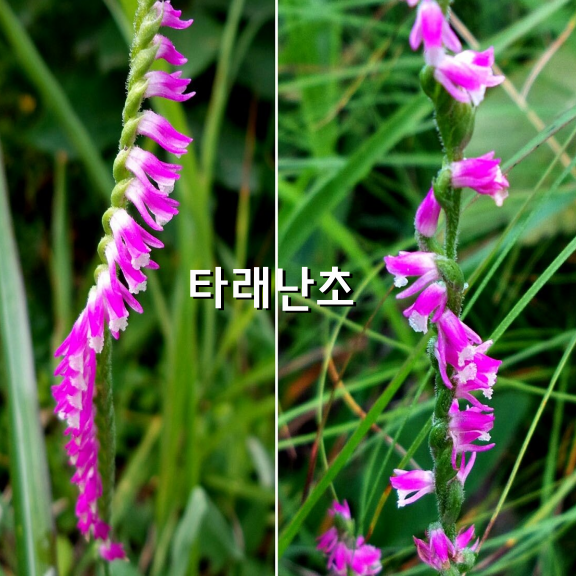 꽃은 5∼8월에 연한 붉은색 또는 흰색으로 피고 나선 모양으로 꼬인 수상꽃차례에 한쪽 옆으로 달린다. 포는 달걀 모양 바소꼴로서 길이 4∼8mm이고 끝이 뾰족하다. 꽃받침조각은 바소꼴이고 길이 4∼6mm로서 점점 좁아진다. 꽃잎은 꽃받침보다 약간 짧으며 위꽃받침잎과 함께 투구 모양을 이룬다. 입술꽃잎은 달걀을 거꾸로 세워놓은 모양으로서 꽃받침보다 길고 끝이 뒤로 젖혀지며 가장자리에 잔톱니가 난다.