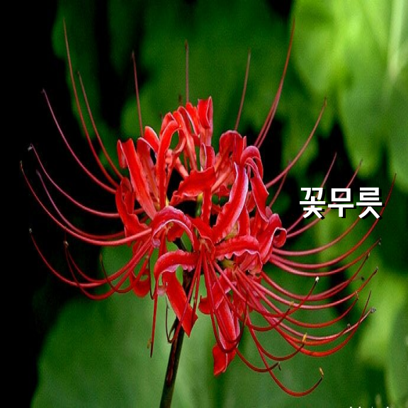 꽃무릇이라고도 한다. 일본에서 들어왔으며 절에서 흔히 심고 산기슭이나 풀밭에서 무리지어 자란다. 비늘줄기는 넓은 타원 모양이고 지름이 2.5∼3.5 cm이며 겉껍질이 검은 색이다. 꽃은 9∼10월에 붉은 색으로 피고 잎이 없는 비늘줄기에서 나온 길이 30∼50cm의 꽃줄기 끝에 산형꽃차례를 이루며 달린다.